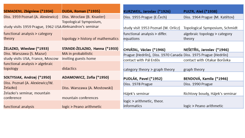 The chapter for the book Age of Reciprocity, eds. Jan Surman and Tomáš W. Pavlíček, concentrates interviews with 12 mathematicians whose educational backgrounds, disciplines, and mutual entanglements are summarized in the accompanying table. All interviews were conducted by TWP.